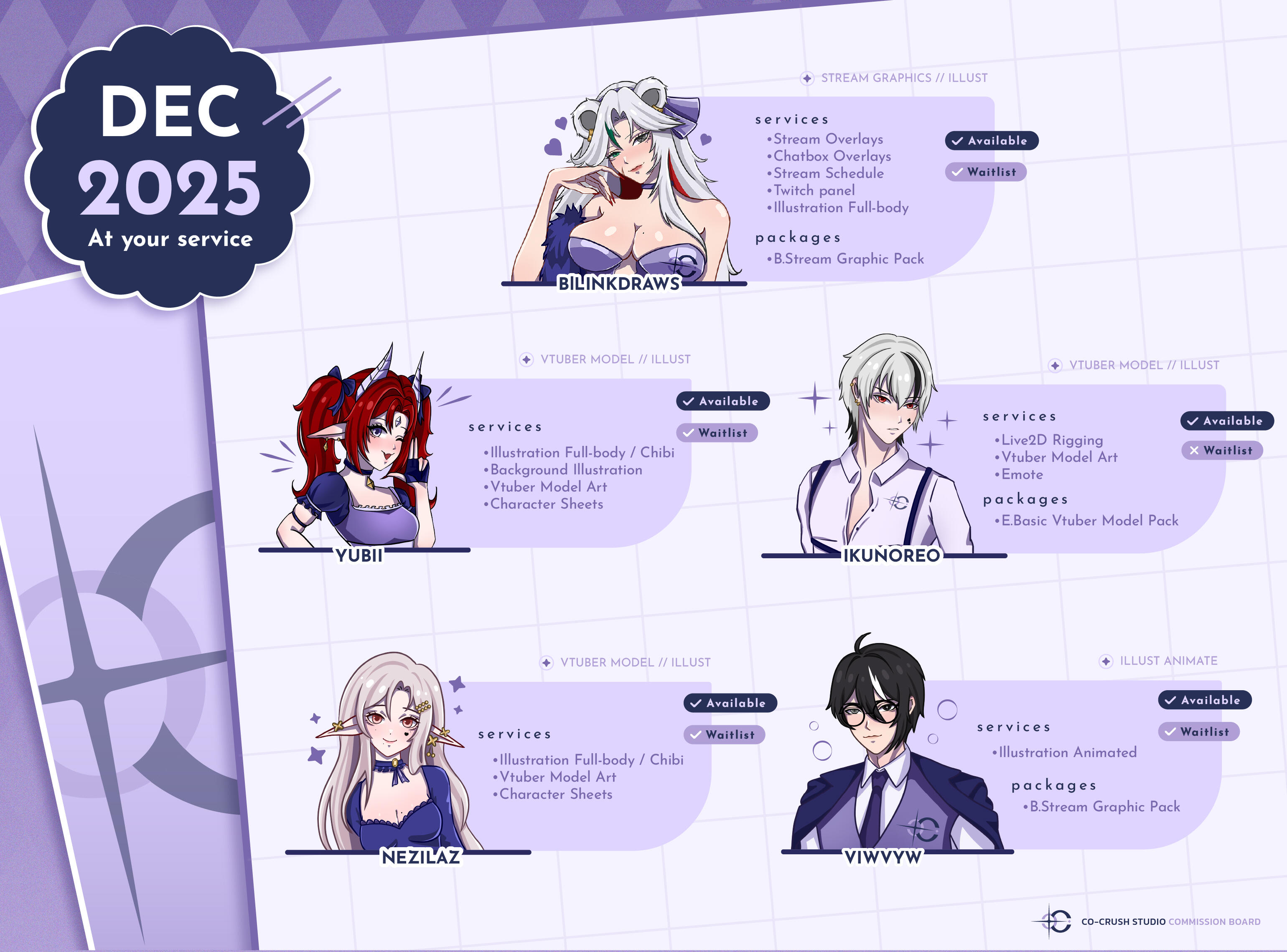 We are a group of artist that create work for aspiring and ambitious content creators, vtubers and streamers.